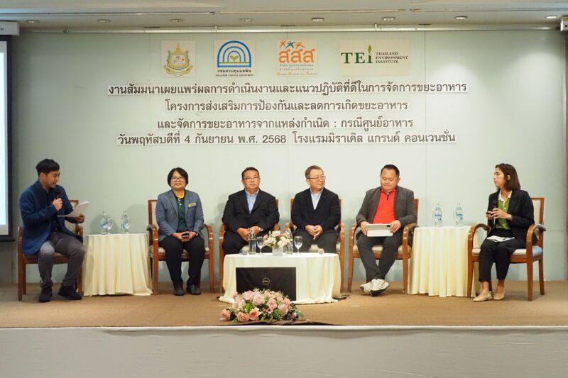 สำนักงานกองทุนสนับสนุนการสร้างเสริมสุขภาพ (สสส.) ร่วมกับ กระทรวงทรัพยากรธรรมชาติและสิ่งแวดล้อม (ทส) กรมควบคุมมลพิษ (คพ.) และสถาบันสิ่งแวดล้อมไทย (TEI) จัดสัมมนาเผยแพร่ผลงานและแนวปฏิบัติที่ดีในการจัดการขยะอาหาร ภายใต้โครงการส่งเสริมการป้องกัน ลด และจัดการขยะอาหารจากแหล่งกำเนิดกรณีศูนย์อาหาร เพื่อเปลี่ยนแปลงพฤติกรรมการลดขยะอาหารอย่างเป็นรูปธรรม