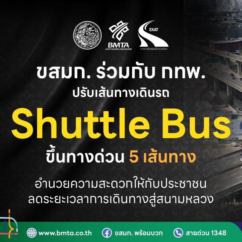 ขสมก. จึงปรับแผนการเดินรถ Shuttle Bus จำนวน 5 เส้นทาง ได้แก่ M1 M8 M11 M13 และ M14 ให้วิ่งบนทางพิเศษ เพื่อช่วยลดเวลา และเพิ่มประสิทธิภาพในการให้บริการ โดยได้ความร่วมมือจากการทางพิเศษแห่งประเทศไทย (กทพ.) งดเว้นค่าธรรมเนียมผ่านทางพิเศษให้แก่รถโดยสาร Shuttle Bus ของ ขสมก. โดยเริ่มตั้งแต่วันที่ 20 พฤศจิกายน 2568 เป็นต้นไป