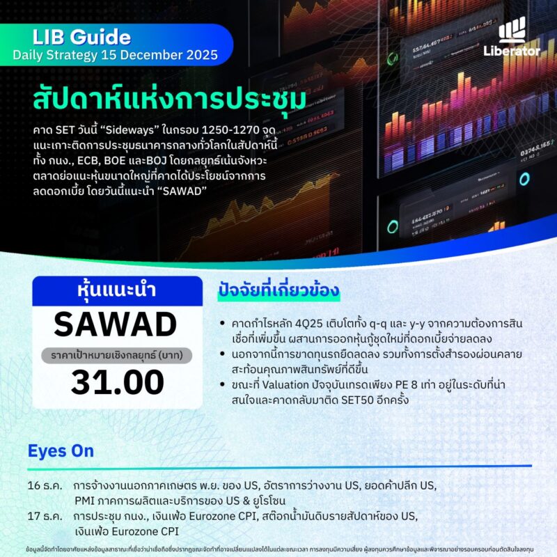 บทวิเคราะห์ “LIB Guide Daily Strategy” ประจำวันจันทร์ที่ 15 ธันวาคม 2568 หัวข้อ “สัปดาห์แห่งการประชุม”