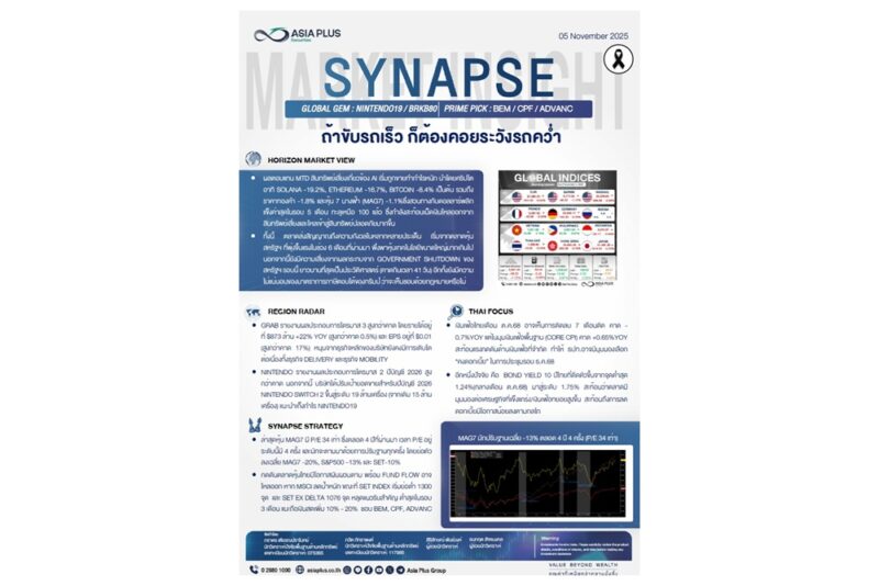 วันที่ 5 พฤศจิกายน 2568 บริษัทหลักทรัพย์ เอเซีย พลัส จำกัด (ASPS) เปิดเผยบทวิเคราะห์ระบุว่า ตลาดหุ้นสหรัฐฯ เมื่อคืนนี้ร่วงแรงในกรอบ -0.5% ถึง -2.1% โดยแรงขายกดดันมาจากความกังวลหลายด้าน ทั้งความไม่แน่นอนทางเศรษฐกิจและความเสี่ยงเชิงภูมิรัฐศาสตร์ที่เริ่มคลี่คลาย ทำให้ Bond Yield อายุ 10 ปี สหรัฐฯ ร่วงลงสู่ระดับ 3.97% ซึ่งต่ำกว่าดอกเบี้ยนโยบายราว 28 จุดฐาน (เทียบเท่าการลดดอกเบี้ย 1 ครั้ง) — สะท้อนความคาดหวังต่อทิศทางดอกเบี้ยขาลง ราคาน้ำมันร่วงแตะระดับต่ำสุดในรอบ 5 เดือน จากสถานการณ์ตะวันออกกลางที่ผ่อนคลายลง เพิ่มแรงกดดันต่อเงินเฟ้อให้มีแนวโน้มอ่อนแรง ขณะเดียวกันตลาดยังวิตกต่อ ปัญหาสินเชื่อของภาคธนาคารสหรัฐฯ, ความเสี่ยงฟองสบู่หุ้นกลุ่ม AI, ความตึงเครียดทางการค้าสหรัฐฯ–จีน, รวมถึง Government Shutdown ที่อาจยืดเยื้อเกิน 25 วัน เมื่อรวมกับมูลค่าตลาด (Valuation) ที่อยู่ในโซนสูง นักลงทุนจึงทยอยลดพอร์ตเสี่ยงและโยกเงินเข้าสินทรัพย์ปลอดภัยมากขึ้น