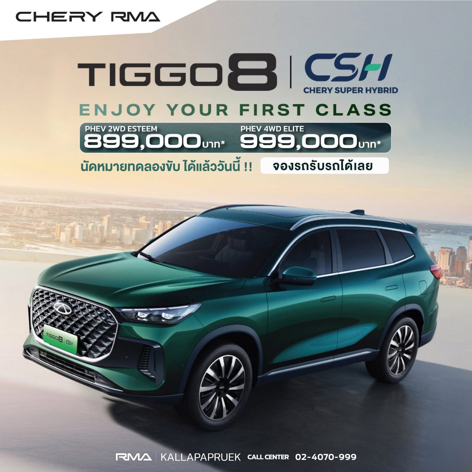 Chery RMA กัลปพฤกษ์ เปิดให้จอง-ทดลองขับ TIGGO 8 CSH ยนตรกรรม SUV Plug-in Hybrid 7 ที่นั่ง สุดพรีเมียม เริ่มต้น 899,000 บาท