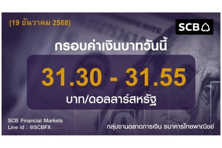 ธนาคารไทยพาณิชย์ ประเมินค่าเงินบาทวันนี้เคลื่อนไหวในกรอบ 31.80 – 32.05 บาท/ดอลลาร์
