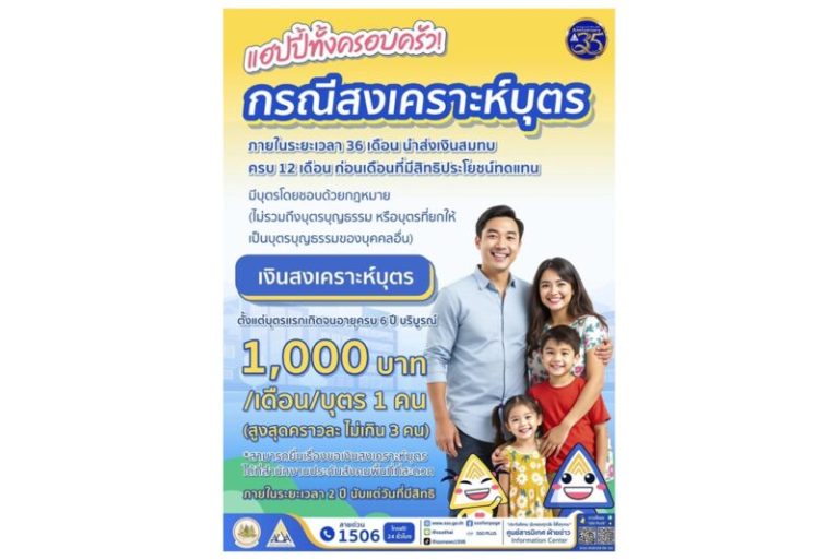 แฮปปี้ทั้งครอบครัว! สำนักงานประกันสังคมดูแลกรณีสงเคราะห์บุตร ผู้ประกันตนรับเงินสงเคราะห์บุตร 1,000 บาทต่อเดือนต่อบุตร 1 คน (สูงสุดคราวละไม่เกิน 3 คน)